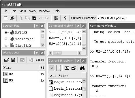 Функция деления многочлена числителя num(s) и многочлена знаменателя den(s) представлена в MATLAB как функция tf