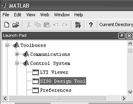 Launch Pad/ Toolboxes/Control System/ Siso Design Tool