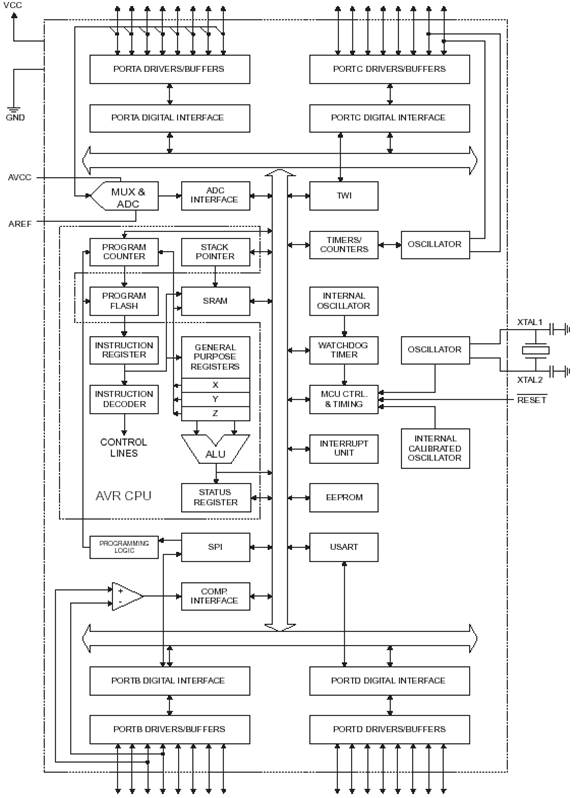 · 8-разрядный высокопроизводительный AVR микроконтроллер с малым потреблением.