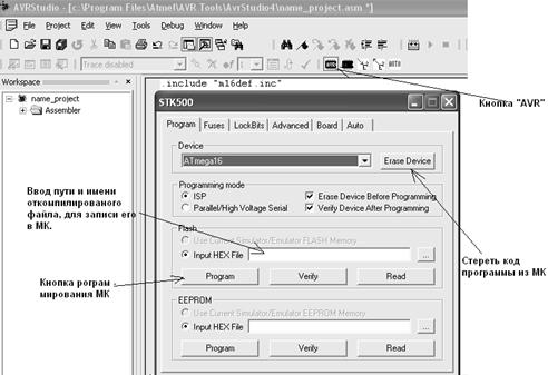 5. Загрузить программу в стенд STK500. Убедиться в правильном выполнении индивидуального задания, при отрицательном результате осуществить изменение алгоритма либо программы. Повторить загрузку