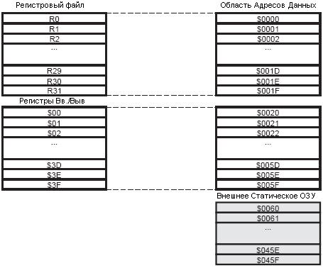 - 16 Кбайт внутренней программируемой Flash памяти (In-System Self-Programmable Flash);