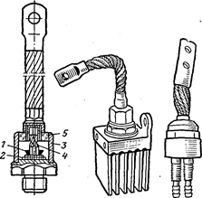 , которое имеет винт для крепления к радиатору и одновременно служит катодным выводом. Анодным выводом служит медный жгут 4,