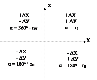 Зная координаты Х,У пунктов государственной геодезической сети (пункты триангуляции - Δ и полигонометрии - □ ) на которые опирается теодолитный ход, решая обратную геодезическую задачу вычисляют α – начальный и конечный дирекционный угол хода.