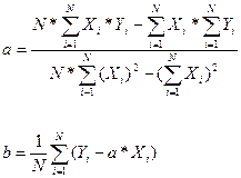 - Набрать программу для расчета коэффициентов линейной зависимости Yрасч=Aрасч*Х+Bрасч по формулам метода наименьших квадратов.