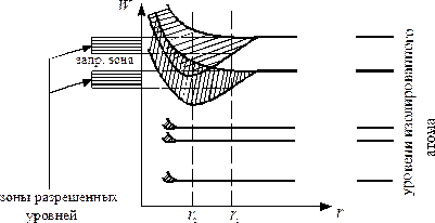 На рис. 2 показано расщепление уровней энергии изолированных атомов при их сближении как функция расстояния r