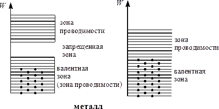 Наибольший интерес с точки зрения электропроводности твердых тел представляют валентные электроны и соответствующие для них разрешенные зоны.