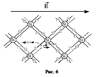 При наличии электрического поля отщепленные электроны будут двигаться направлено и против поля, образуя электрический ток.