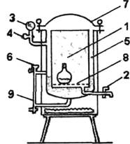 тщательно вымыта, закрыть ватно-марлевой пробкой, накрыть бумажным колпачком, завязать у горловины и стерилизовать в автоклаве при 120°С в течение 30 мин. Стерилизации можно провести сухим парой в печи Пастера (обычный сушильный шкаф) при 150 С в течение двух часов или при 100°С в течение одного часа. Для проб хлорированной воды в бутылки перед стерилизацией внести 2 мл 1,5%-ного раствора тиосульфата натрия. В посуду, стерилизованную сухим паром, вносят перед отбором пробы 2 мл тиосульфата натрия.