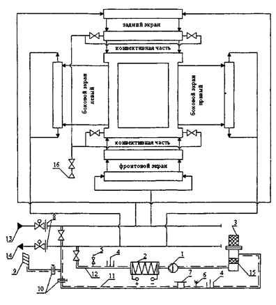 2.11. Осушка воздуха во внутреннем объеме поверхностей нагрева водогрейного котла может быть осуществлена за счет тепла горячей сетевой воды, автономно поступающей в несколько специально выделенных и отглушенных от конвективной части полупакетов. При этом организовывается продувка воздухом внутреннего объема котла, а также циркуляция воздуха газового тракта котла с помощью вспомогательных вентиляторов.