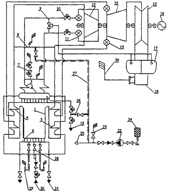 заполнить автономный контур водой, для чего открыть воздушники контура, закрыть дренажи, приоткрыть задвижки к контуру от входного и выходного трубопроводов котла;