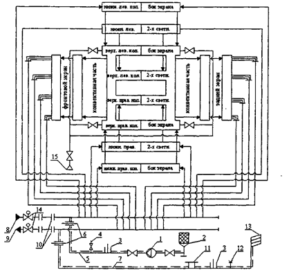 9.6.4. При понижении давления в водяном тракте до 2-3 атм необходимо открыть воздушники автономного контура и 4 дополнительных воздушника Dу