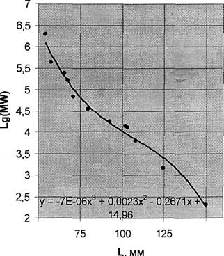 зависимости десятичного логарифма молекулярной массы от времени удерживания (или расстояния на ленте самописца), как это показано на рис 1.