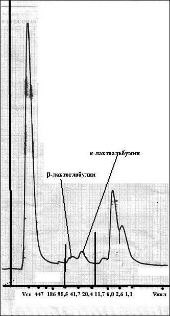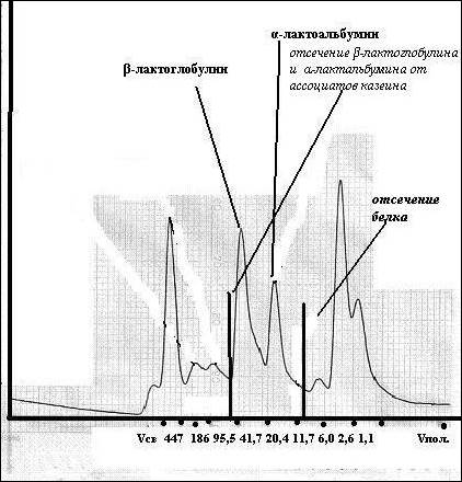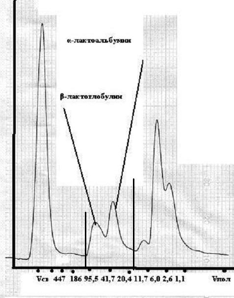 Метод идентификации белков молока основан на хроматографическом разделении с помощью эксклюзионной жидкостной хроматографии высокого давления белков водорастворимой фракции коровьего молока (предварительно обезжиренного и отфильтрованного).