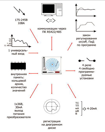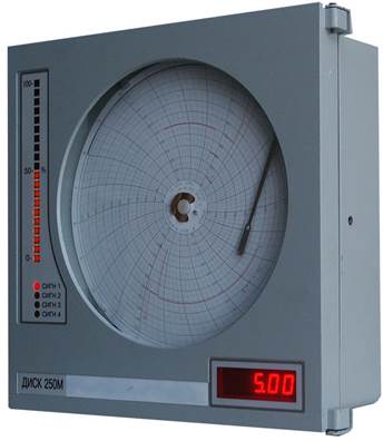 ДИСК 250М – прибор, построенный на микропроцессорной элементной базе предназначен для измерения, регистрации, сигнализации и регулирования параметров технологических процессов, представленных унифицированными сигналами и сигналами от термопар, термопреобразователей сопротивления, дифференциально–трансформаторных датчиков и пирометров.