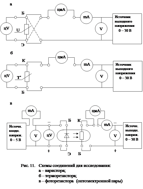 Ознакомиться с физическими основами работы, характеристиками и параметрами полупроводниковых резисторов - варисторов, терморезисторов, фоторезисторов, исследовать зависимость их параметров и характеристик от напряжения и температуры, развить умения экспериментального исследования.