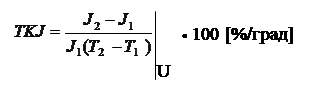 8. Температурный коэффициент тока варистора ТКJ равен относительному изменению тока при изменении температуры при постоянном напряжении на варисторе.