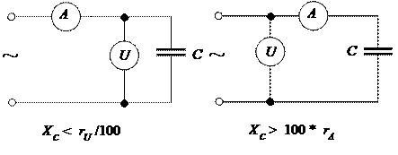 Какая схема предпочтительнее для измерения малых, а какая больших сопротивлений.