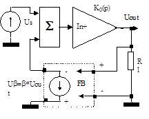 Us, Js – входной источник напряжения или тока соответственно , Rl – сопротивление нагрузки, остальное – элементы цепи ОС. Величины U2