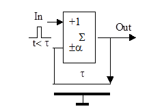 4. На рис.5 изображен усилитель S с коэффициентом усиления 1, его выход Out замкнут на суммирующий вход ±a через линию задержки сигнала во времени на величину t, a – вещественное число – весовой коэффициент входа ОС. Передаточной функции линии задержки, являющейся в данной схеме цепью ОС, соответствует формула: FB