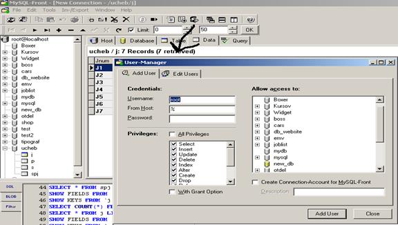 Ознакомиться с приложениями, включенными в состав СУБД MySQL. Получить навыки управления учетными записями пользователей и определения привилегий. Ознакомиться с утилитами, входящими в состав СУБД MySQL, получить навыки работы с ними.