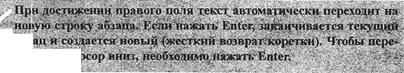 Перемещение по документу осуществляется с помощью клавиш управления курсором. По документу можно перемещаться слева направо при помощи пробелов, табуляции, а сверху вниз с помощью клавиши< Enter>. Комбинация клавиш <СТRL>+клавиши управления курсором влево, вправо осуществляет переход на одно слово влево, вправо.< CTRL>+< Home> - переход в начало документа, <CTRL>+<End> переход в конец документа. <End> - переход в конец строки, <Ноmе> - переход в начало строки.