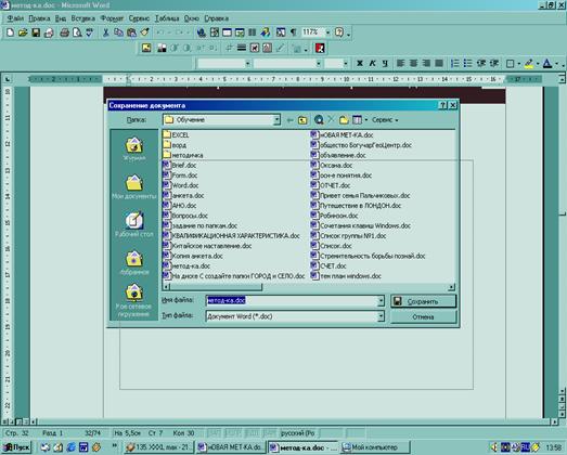 При необходимости сохранения созданного документа диалог сохранения имеет вид:
