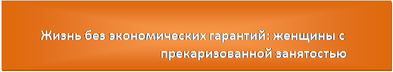 В настоящем докладе исследуется феномен отсутствия экономических гарантий у женщин, особенно с точки зрения прекаризации их занятости. Произведён анализ глобальных тенденций в мире занятости с гендерной позиции, включая разрушительный вклад мирового экономического спада 2008г. Особенно подчёркивается вторая, недооценённая до сих пор, волна влияния кризисных явлений на положение женщин.
