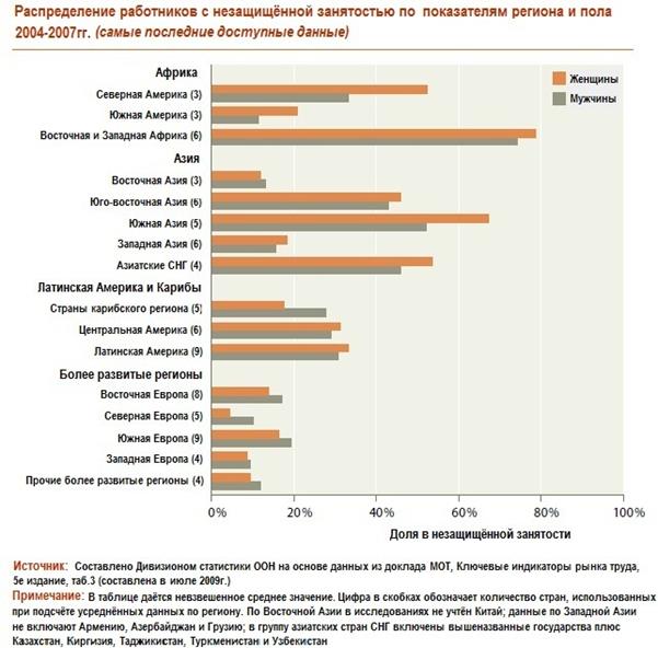 , достигла 1,53 млрд. человек, что составляет более половины (50,1%) всего трудоспособного населения. По сравнению с 2008 годом, в 2009 году количество мужчин и женщин с незащищённой занятостью увеличилось на 110 млн. человек.