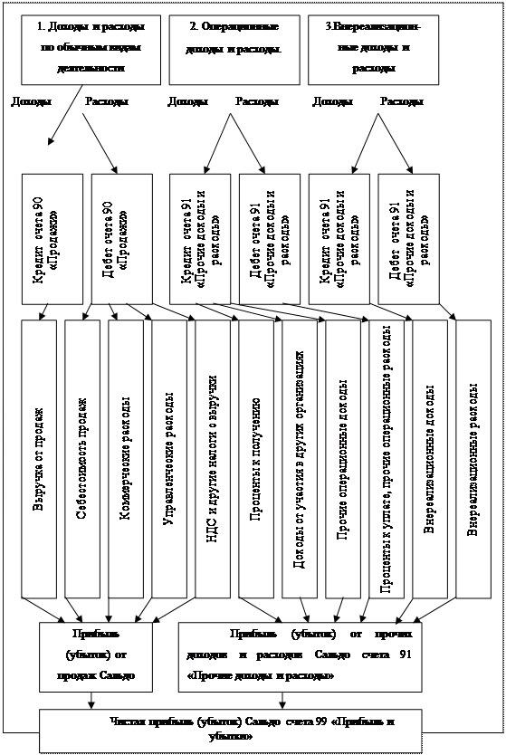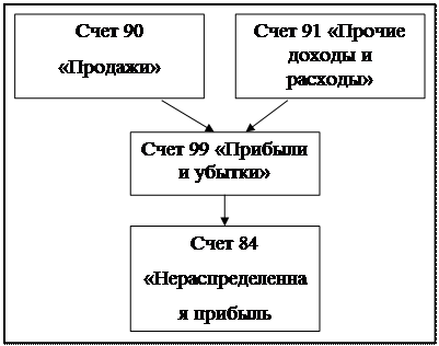 Для выявления конечного финансового результата деятельности организации за отчетный период и обобщения информации о ее доходах и расходах предназначены счета: 90 «Продажи», 91 «Прочие доходы и расходы» и 99 «Прибыли и убытки».