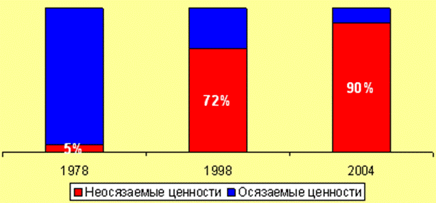 4) Повышение значимости интеллектуальных активов приводит к их доминированию над традиционными материальными активами и ценностями.
