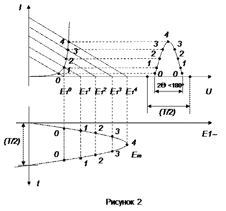 (рисунок 3), а угол отсечки Q тока I и напряжения UR
