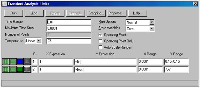 заполняется по умолчанию как Rise Time ((v(out)/v(in))/30,1,1,1,2). Её содержимое открывается по нажатию пиктограммы Get
