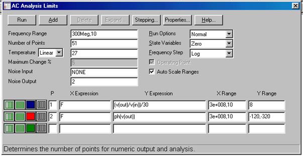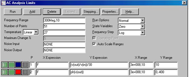 Рис. 11. Параметры настройки окна AC analysis