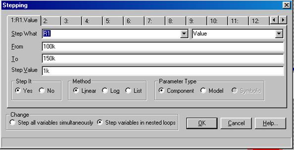 варьировать случайным разбросом сопротивление модели RES1 в пределах 20 % относительно номинала 150K (R=1). При необходимости для R2 можно создать свою модель RES2, если аналогично записать RES