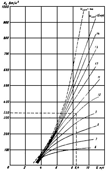 1.5. Важнейшая задача подбора мест для ВЭУ - выявление участков территории с максимально возможной продолжительностью энергоактивных скоростей. В частности, для агрегата типа АВЭУ-6 это диапазоны скоростей, превышающих 5 м/с. Наиболее практически важной является часть рабочего диапазона, когда достигается номинальная (установленная) мощность ВЭУ. Для АВЭУ-6 это диапазон скоростей от 9 м/с и выше.