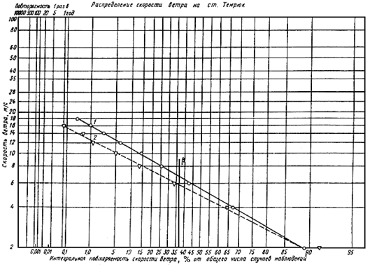 В таком случае параллельные наблюдения в обоих пунктах позволяют надежно (на основе разработанных в климатологии методов приведения к длинному ряду) получить весь комплекс необходимых для ветроэнергетики расчетных и режимных характеристик ветра.