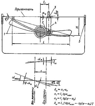 после изготовления и установки регулировочных шайб затягиваются гайки проушин и проверяется фактический угол наклона лопастей. Если отклонение от среднего значения угла не превышает ±0°30', наладка считается оконченной и лопасти установленными в идентичное положение;
