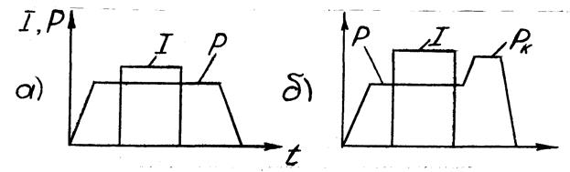 Формула показывает, что параметрами режима сварки являются сила тока, время импульса тока, давление, определяющее сопротивление контакта между деталями.