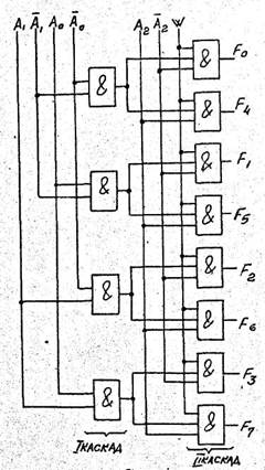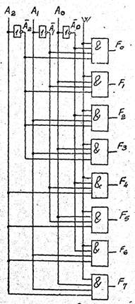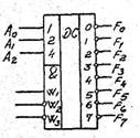 (т.е. номер выхода) равно двоичному числу, образованному набором входных сигналов. Таким образом, дешифратор"" преобразует поданный на его входы код числа с выдачей .информационного сигнала на один из выходов.
