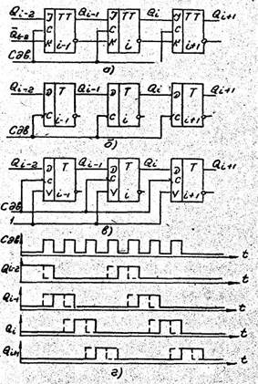 исследуемых счетчиков, временные диаграммы сигналов счетчиков,