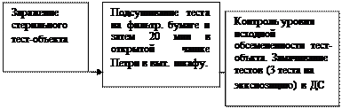 Тест-объекты: ткань бязевая или батистовая; поверхности размером 10х10см из различных материалов; предметы ухода за больными; игрушки мелкие и крупные из различных материалов; медицинские инструменты разнообразные по форме, характеру поверхности и материалу; жесткий и гибкий эндоскопы; набор резиновых и пластиковых трубок; столовая посуда и приборы; лабораторная посуда и посуда из-под выделений; бинты, вата.