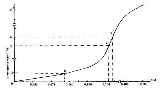 Результаты взвешивания фракций при ситовом анализе вносятся в таблицу 1. По усредненным данным таблицы 1 строятся интегральные и дифференциальные кривые распределения частиц породы по размерам (рисунок 1).