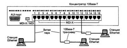 Концентраторы характерны практически для всех базовых технологий локальных сетей - Ethernet, ArcNet, Token Ring, FDDI, Fast Ethernet, Gigabit Ethernet, l00VG-AnyLAN.