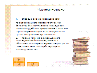 Библиографический список по предмету работы невелик, его ограничение происходит одновременно по нескольким параметрам. Первый из них заключается в том, что большинство исследований в области информационных технологий вообще не относятся к правовой сфере, во-вторых, подавляющая часть материала по данной тематике касается в основном прикладных аспектов правовой информатизации в зарубежных странах, в частности в Российской Федерации, в-третьих, в Республике Беларусь на настоящее время не написано ни одного полноценного научного труда по исследуемым нами вопросам использования средств информационных технологий в адвокатской деятельности и гражданском судопроизводстве.