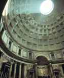 Форма Пантеона осталась нетронутой. В нем не чувствуешь над собой свода, как будто небо неприметно опустилось на землю, и свет, падающий сверху, наполняет храм.