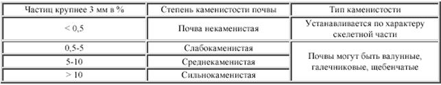 Таблица 3. Классификация почв по каменистости (Н. А. Качинский, 1958)