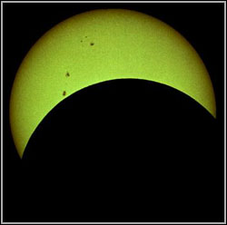 Солнечное затмение начинается с ущерба западного края Солнца. Он медленно увеличивается, и солнечный диск превращается в серп выпуклостью на восток. Солнечный свет постепенно ослабевает, становится прохладней.