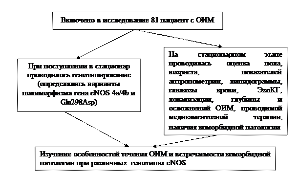 - Оценить связи генетических детерминант сосудистой реактивности (полиморфизм 4а/4b и Glu298Asp гена эндотелиальной NO-синтазы) с особенностями течения острого инфаркта миокарда и коморбидными заболеваниями.