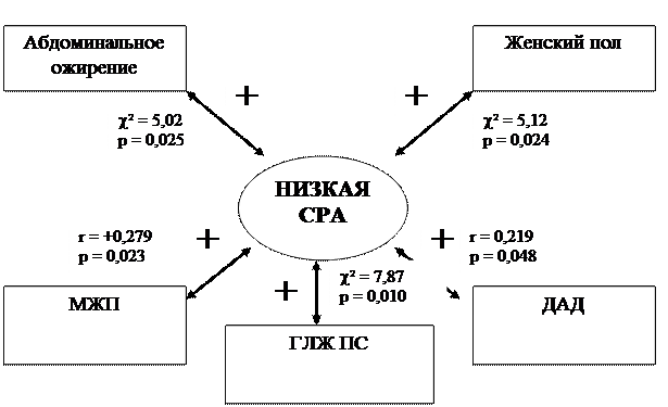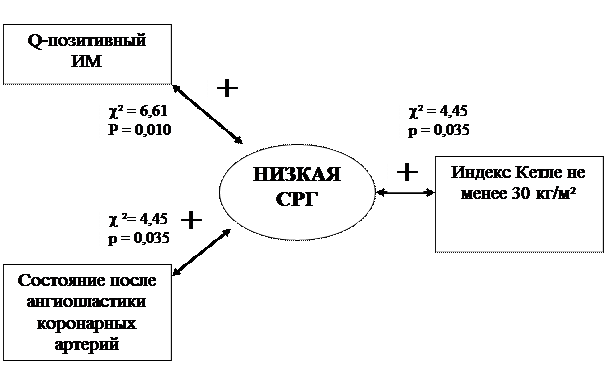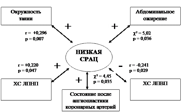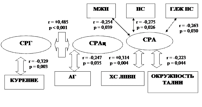 - Из совокупности конвенционных факторов риска (мужской пол, возраст, курение, ожирение, липидные нарушения, артериальная гипертензия), а также клинических характеристик (анамнестических, антропометрических, эхокардиографических) выделить кластер показателей, наиболее значимо связанных с низкой сосудистой реактивностью у пациентов с коронарным атеросклерозом и ишемической болезнью сердца.