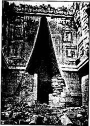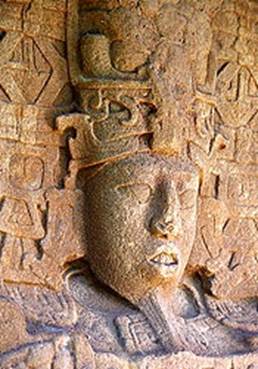 Храм Солнца в Паленке ( 2-я половина 7 в. н. э.) — небольшое прямоугольное здание с высоким гребнем на плоской крыше, воздвигнутое на невысокой (8 м) 5-ступенчатой пирамиде и разделенное продольной стеной параллельно фасаду на два помещения с ложными сводами. Первое из них образует нечто вроде портика, так как фасадная стена прорезана тремя широкими дверными проемами. В центре второго помещения находилось маленькое святилище, перекрытое бревенчатым накатом. Бревенчатые перекрытия и ложный свод характерны для всех зданий майя, не знавших замкового свода. Внутри и снаружи храм был богато украшен рельефами. На задней стене его помещен барельеф, изображающий маску Бога Солнца, подвешенную на двух скрещенных копьях, около которой в позе поклонения представлены две человеческие фигуры. В стенах имеются многочисленные окноподобные отверстия. Уравновешенность частей, простота и благородство очертаний, сдержанное употребление орнамента делают Храм Солнца одним из наиболее выразительных и впечатляющих памятников архитектуры майя. Храм Надписей имеет 70 футов в высоту. В 1945 году при его раскопках археолог Альберто Рус обнаружил в подземелье саркофаг, которому более десяти веков. От известковых отложений da стенах и потолке гробницы образовались сталактиты. Девять рельефных фигур богов подземного царства, сделанных из алебастра, украшали стоны гробницы. Умерший мужчина был приблизительно 40 лет, ростом 173 см. Его зубы окрашены в красный цвет, хорошо сохранились. На нем множество украшений из нефрита: бусы, на всех пальцах — кольца, в руках четки. Его украшали также серьги и браслеты, рядом лежали вырезанные статуэтки цветов, маленьких тыкв, летучей мыши, змеиных голов, фигурок богов с характерными чертами. Один кусочек нефрита находился во рту. Шею и плечи покрывало огромное ожерелье из нефрита. Лицо покрыто маской из нефрита, глаза маски сделаны из раковин, а зрачки — из кусочков обсидиана. Это была усыпальница верховного жреца. На строительство ее должно было уйти много лет. Могила была подготовлена заранее, а пирамиду, несущую на себе Храм Надписей, сооружали уже над ней. Поздней было установлено, что погребенный под пирамидой был правителем Паленке. Он родился в 655 г. и умер в 694 г. Для индейцев того времени он был очень высок. По антропологическим данным установлено, что средний рост индейца был примерно 150 см. В коридоре у погребального склепа были принесены в жертву 6 юношей. Кладка пола каменными плитами, как в Храме Надписей, встречается довольно редко. Обычно в монументальных постройках майя делали его из плотно уложенного слоя извести. Только в Паленке встречается использование свода над внешним входом. В 1960-е гг. дворец в Паленке был объявлен национальным памятником. Памятники архитектуры майя Даже в больших городах древних майя монументальная архитектура представлена в основном церемониальными сооружениями, предназначенными для почитания божеств, такими, как храмы, площадки, помещения для ритуальной игры в мяч и жилища для жрецов. Скульптура также в качестве главных своих тем имеет религиозные символы и связи человека с божественным началом. Для архитектуры майя, особенно в центральном и северном районах, характерны здания из бутовой кладки с ложным, или «ступенчатым», сводом, облицованных штуком или хорошо отесанными ка